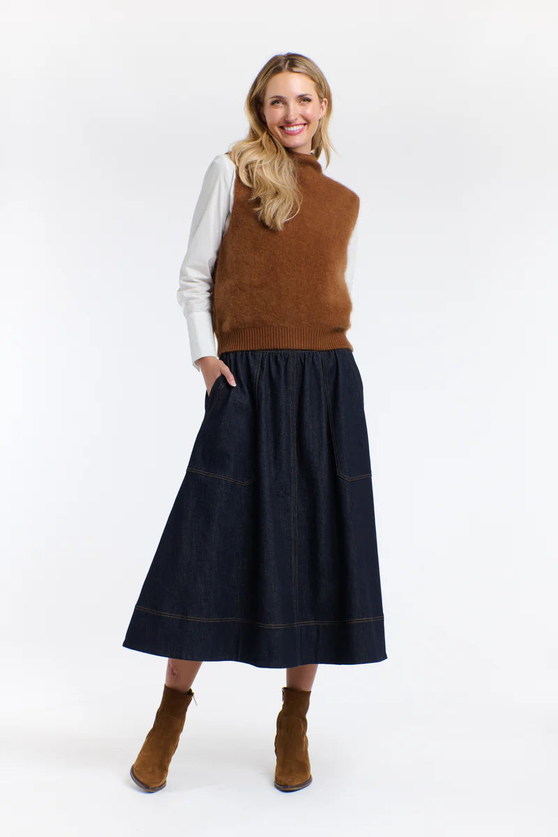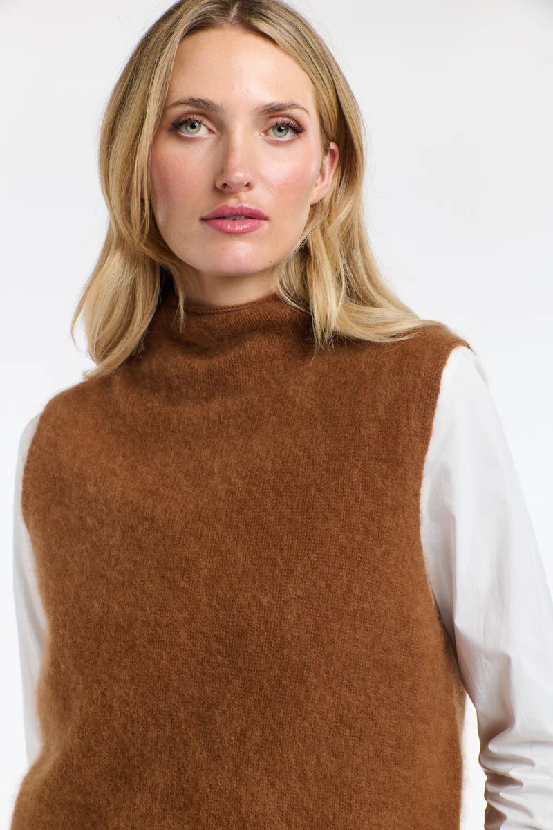 The Bobby Vest is a stylish layering essential crafted in a unique and luxurious wool and cashmere blend that feels beautiful against the skin. The relaxed funnel neckline and clean silhouette add warmth and polish without bulk, making this the kind of piece that quietly elevates every outfit. Layer over a crisp shirt for a tailored finish, or wear this piece over a simple tee for understated everyday style.