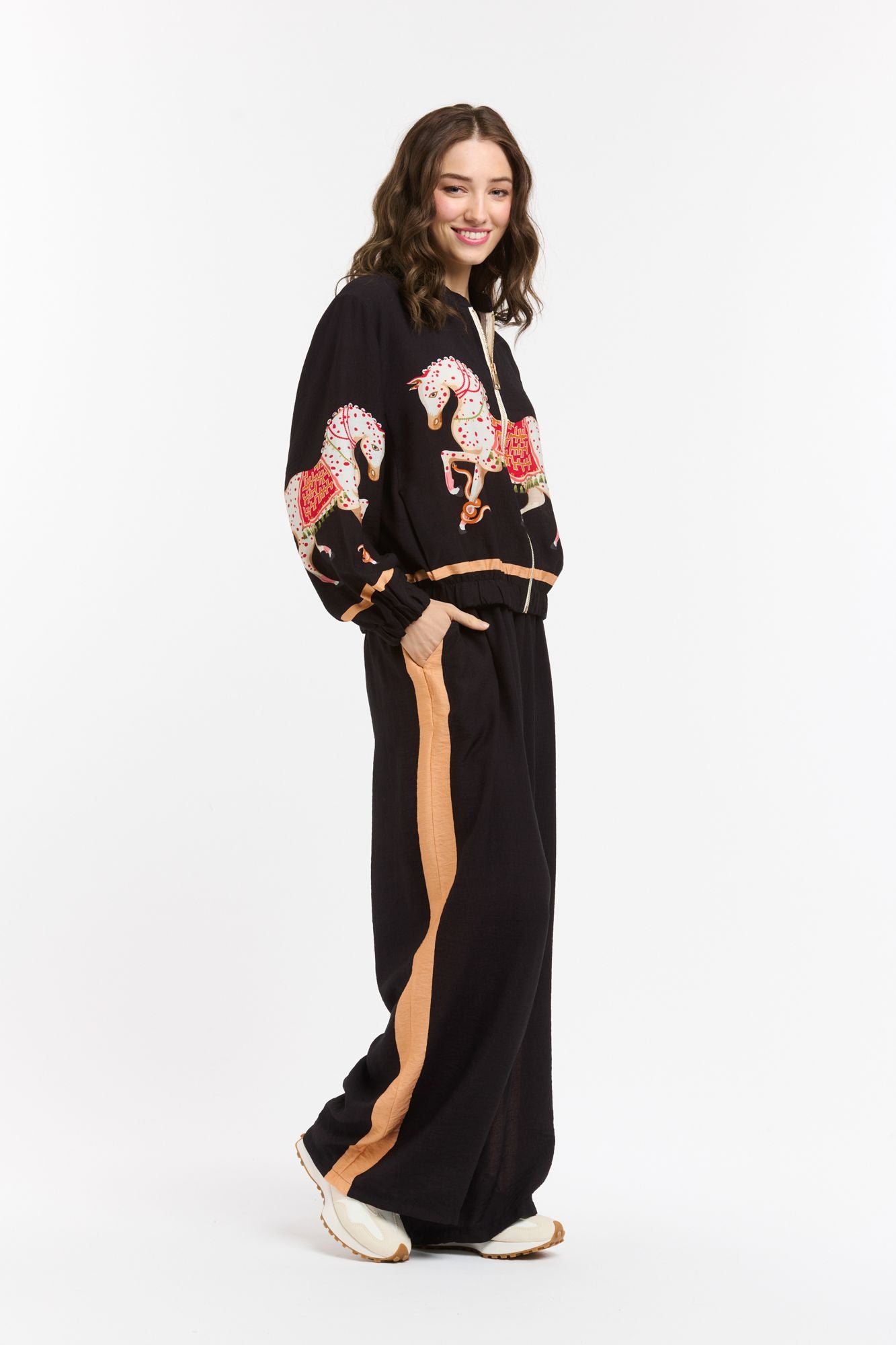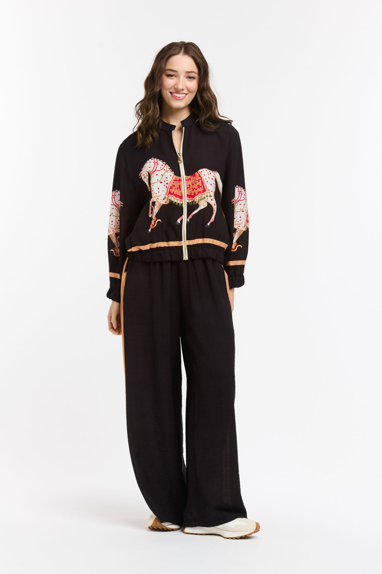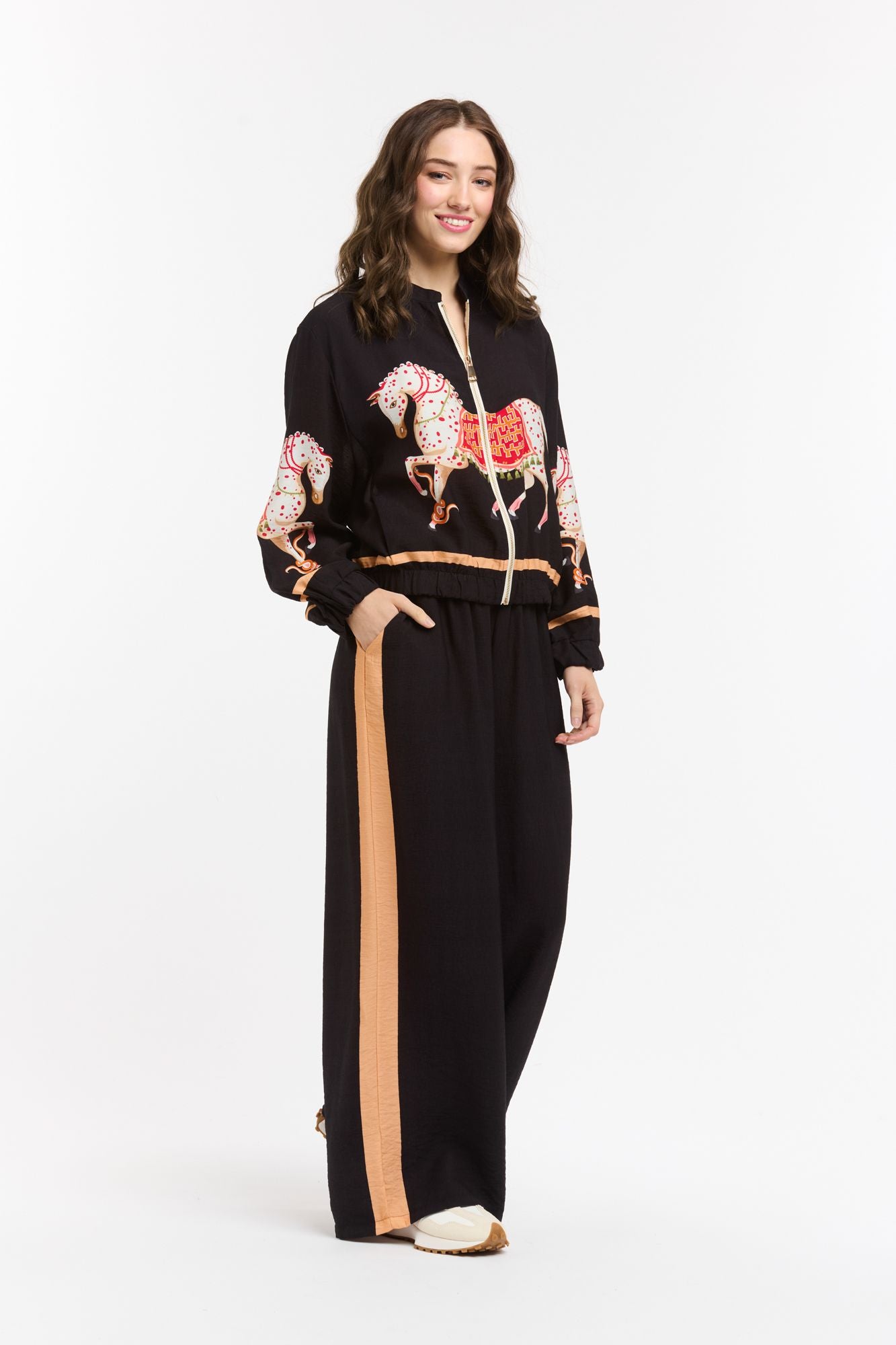 Featuring a gorgeous horse print on both front and back of bomber jacket
